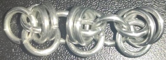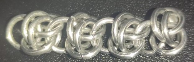 Barrel is a simple weave to make. The sample piece shown in this post is a bit loose due to being made with rings whose AR is 4.03 instead of the recommended 3.5. However, it can still look wonderful when under tension, which can be applied by integrating it into a bracelet or orienting it vertically. Additionally, the weave uses relatively few rings per inch of length, making this a budget-friendly weave when using expensive materials. I highly suggest finishing the weave by adding one additional ring between the final two rings. I think this should be mentioned in the tutorial; however, the tutorial is otherwise good. Overall, barrel is a great, versatile, and forgiving weave that I highly recommend learning.