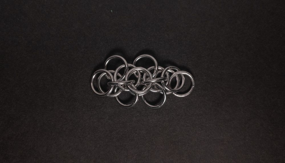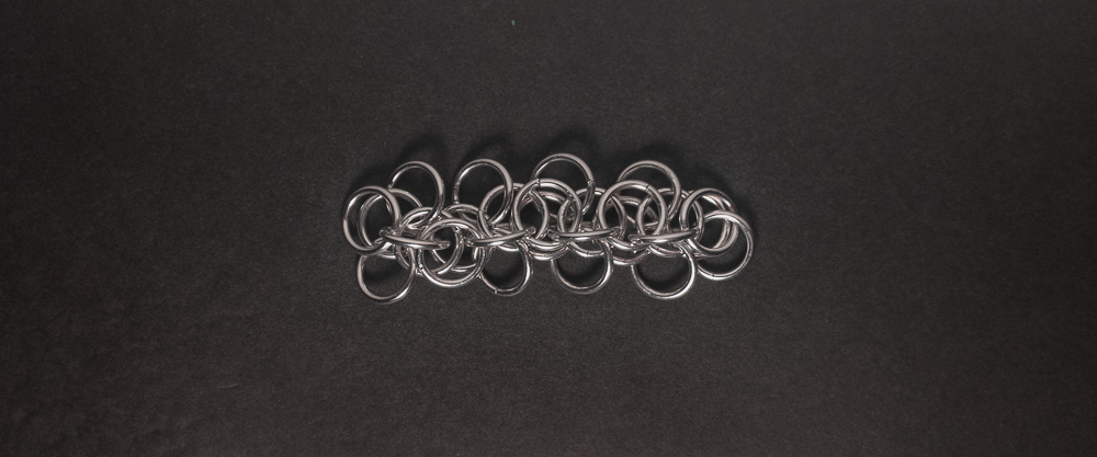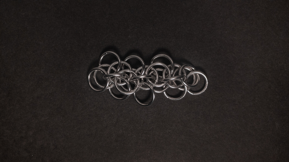 The Orchid weave is not very complex to understand, though starting it can be somewhat of a challenge since its structure takes one to two units to become well-defined. However, once started, it is easy to make. In my opinion, the weave looks good but appears a bit loose, and I expect it may look better if made with a tighter aspect ratio. With its flat and wide structure, it is well-suited for bracelets and chokers. However, since the weave relies on a series of single rings to hold it together, I would not recommend using it as strapping unless it will not be under strain. The weave’s name likely comes from its resemblance to an orchid flower. Balancing its aesthetic appeal against the difficulty of starting and its limited uses, I still recommend learning this weave for those looking to move beyond beginner-level weaves and add a floral touch to their repertoire.