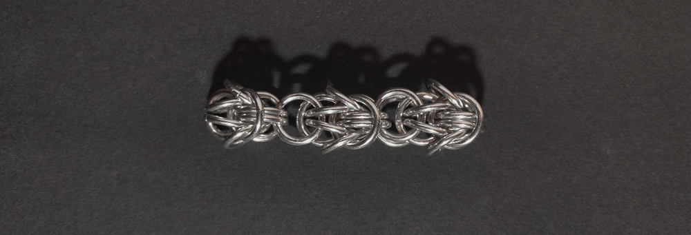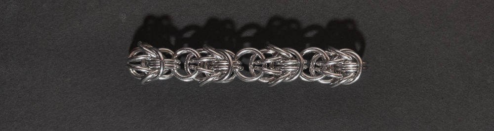 The weave is somewhat complex to understand, but fairly simple to make once you grasp it. I find it has great aesthetic appeal. This may be due to the visual similarity of the unit joints to those of Byzantine. As a chain weave with a square cross-section, it works well for bracelets, chokers, longer necklaces, or cords. Balancing its strong visual appeal against the challenge of learning it, I recommend this weave to maillers who have a moderate amount of experience or plenty of time to practice.