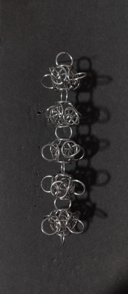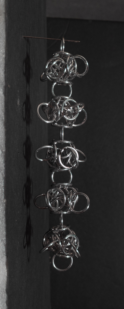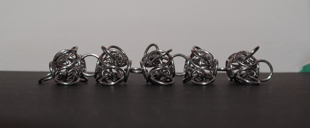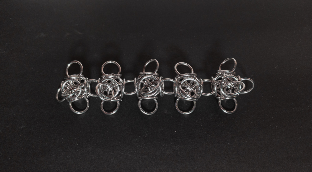 The Tetraorb Line weave is quite simple to understand, though it can be a bit tricky to make, particularly when joining units. Pay close attention, as mistakes can change the pattern of the rings joining the orbs. I find that the weave looks quite nice. While this is a chain weave, the large unit size makes it impractical for bracelets and chokers; instead, it is better suited for longer necklaces or for using shorter sections as earrings. Additionally, the weave has an internal cavity that allows for capturing small items such as marbles or minerals. I highly recommend using bent-nose pliers and, when joining units, to make it easier. Given its aesthetic appeal, relative ease of learning, and unique ability to capture multiple items, I highly recommend learning how to make the Tetraorb Line weave.