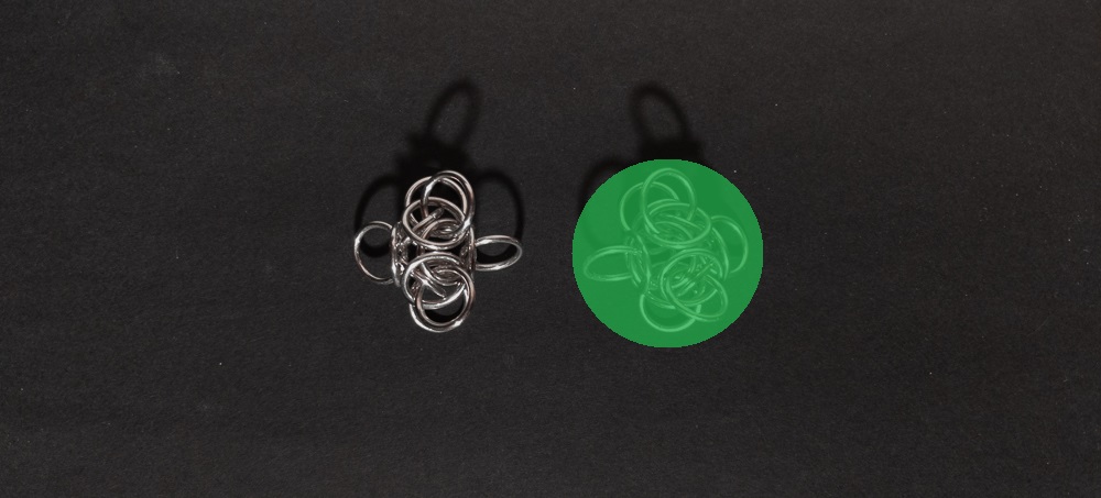 On the new Tetra Orb, remove the outside ring on the side opposite to where you will extend your chain (red in the image below).