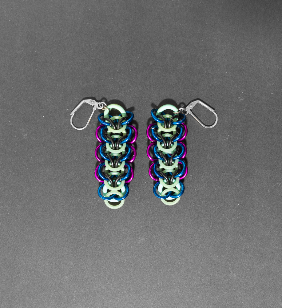 Were I to make this project again, I would only change two things. The first would be to source 16 SWG glow-in-the-dark rings, if possible. The second would be to try to find water-resistant earring backings and clasps for more assured longevity.